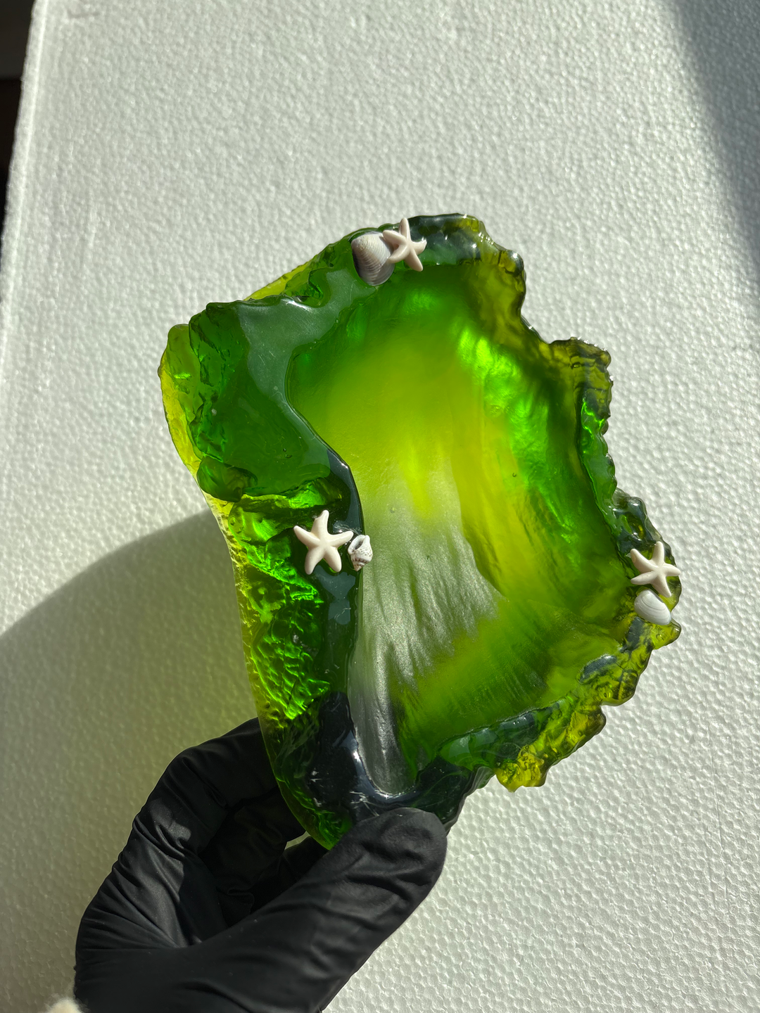 In calming shades of green, this handcrafted resin tray features delicate gold accents and tiny star embellishments that add a touch of whimsy. Perfect as a jewellery holder, candle tray, or decor accent - a beautiful balance of elegance and purpose.